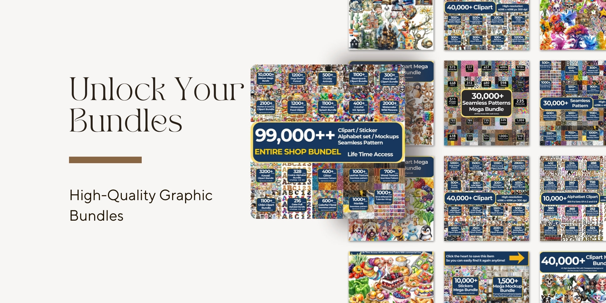 Mega Clipart Bundle: 40,000+ PNG Graphics (Lifetime Access, Instant Download, Commercial Use)